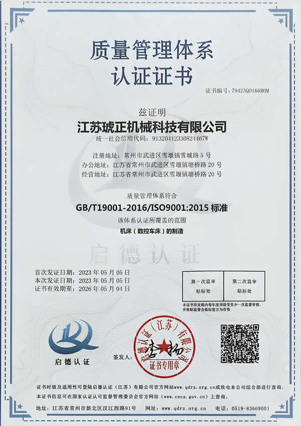 质量管理体系认证证书